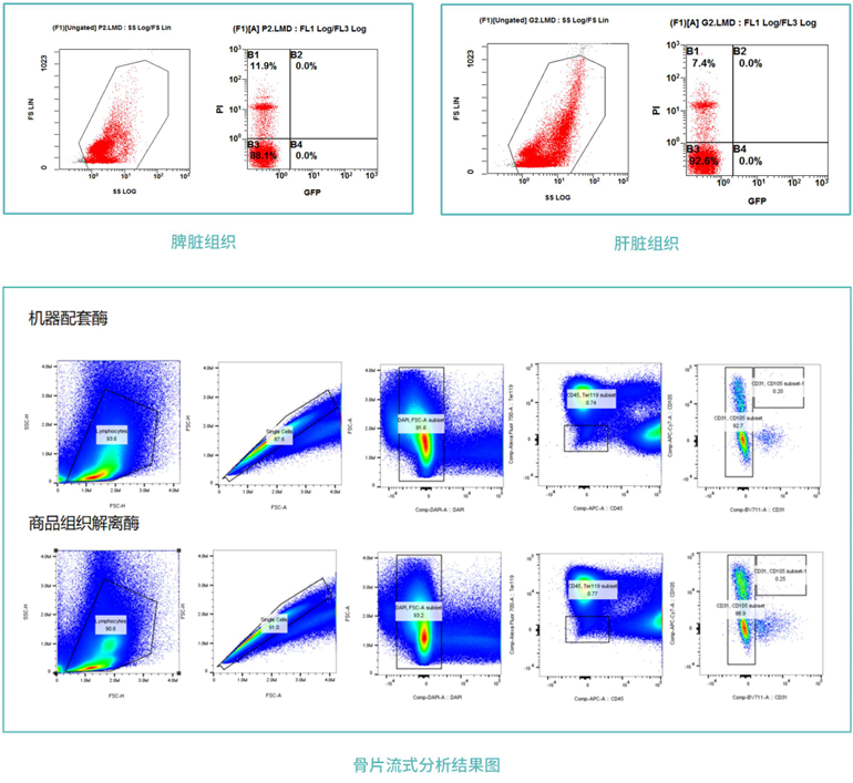 樣品通過雙向的機(jī)械切割與消化酶混合作用,通過恒溫消化,組織樣品的剪切,得到高濃度的活細(xì)胞懸液。后續(xù)經(jīng)過消化終止,過濾洗滌,必要時(shí)加以紅細(xì)胞裂解等步驟,可得到百萬到千萬的級(jí)別的活細(xì)胞,不同的組織均可以達(dá)到90%以上的細(xì)胞得率。